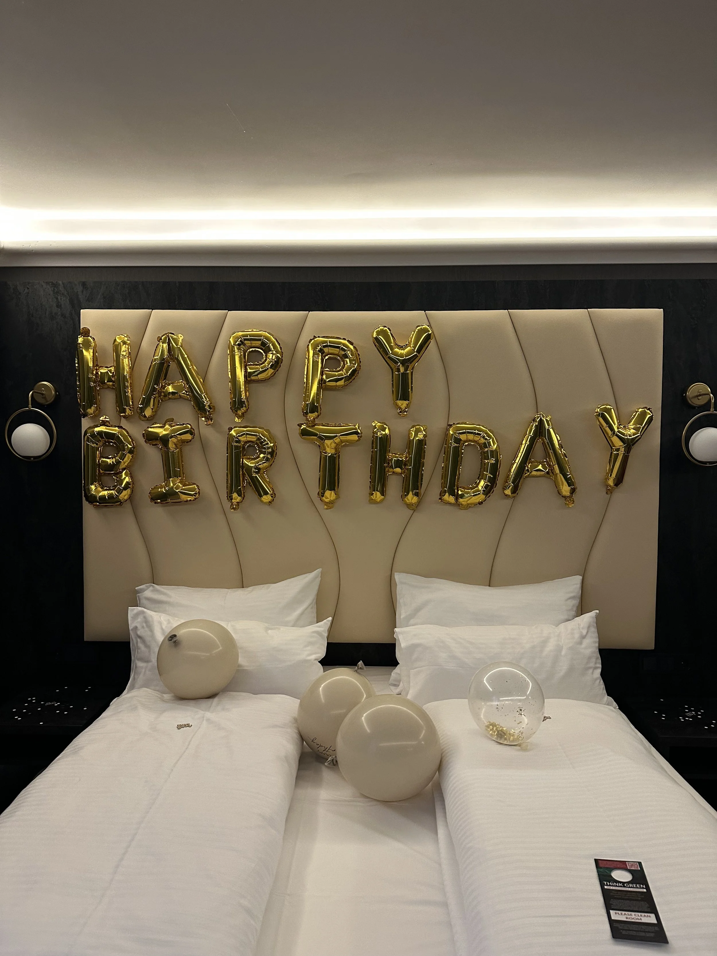 Bei ihrer Ankunft wurden sie mit einem liebevoll dekorierten Zimmer begrüsst, inklusive Geburtstagsdekoration und einer gekühlten Flasche Prosecco, die nur darauf wartete, geöffnet zu werden. Eine kleine Geste, die den Ton für ein warmes, freudiges Wochenende setzte.