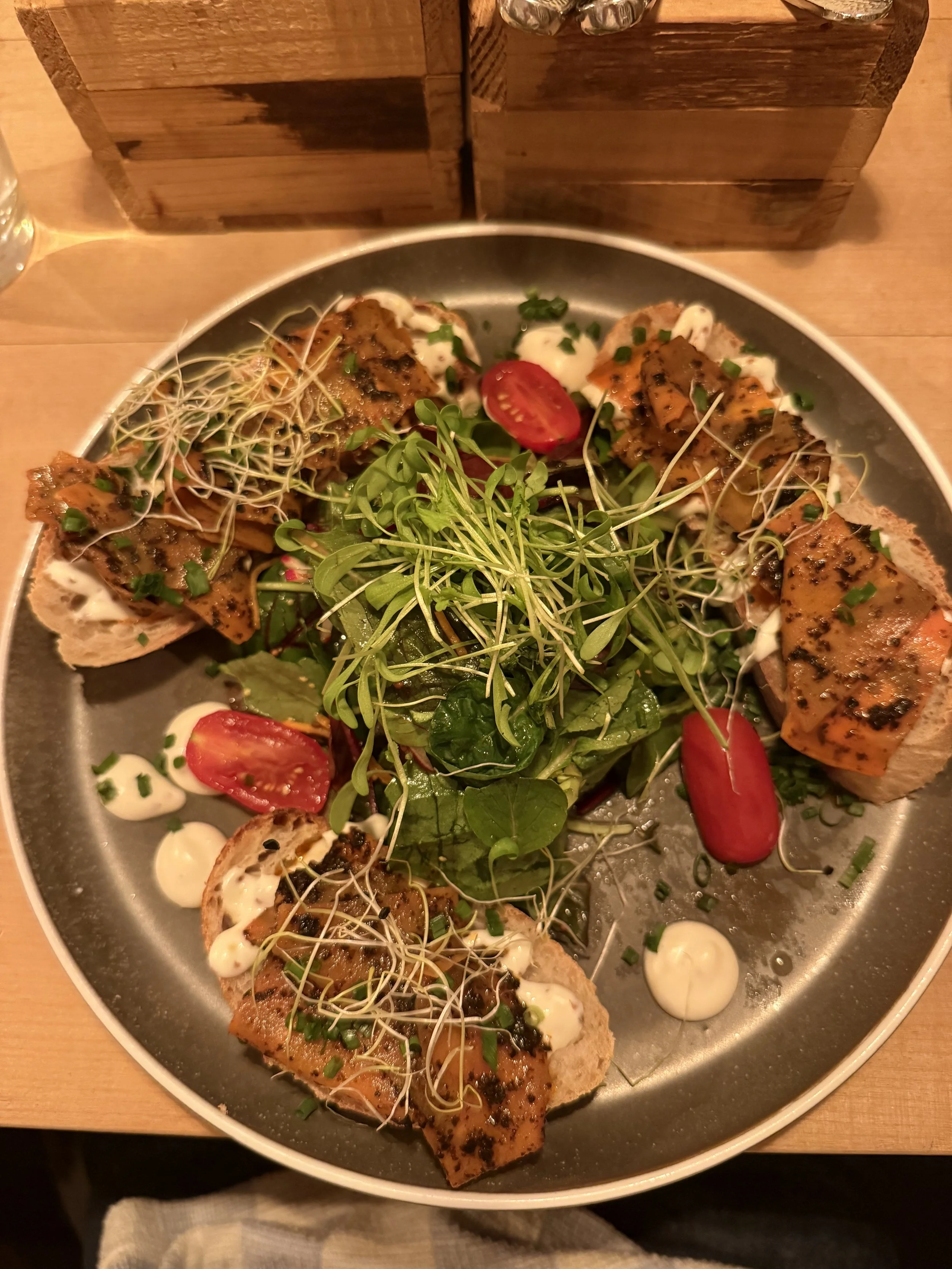 Ein vollständig veganes Abendessen, das zum Highlight des Wochenendes wurde